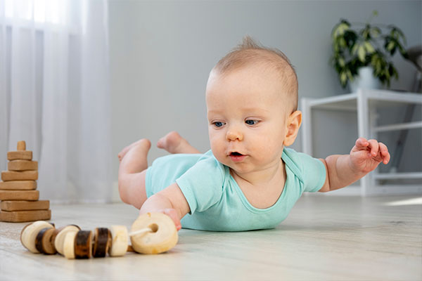 Fournissez à votre bébé des stimuli sensoriels doux et sécuritaires pour encourager l’exploration; par exemple, placer des objets colorés et texturés à proximité de votre bébé lorsqu’il est éveillé favorisera son développement sensoriel.